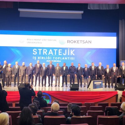 BAİBÜ Rektörü Sayın Prof. Dr. Faruk YİĞİT Hocamızın daveti üzerine Bolu Büyük Sanayi Sitesi Yönetimi adına Yönetim Kurulu Başkanımız Sayın Murat KOCA Ülkemizin savunma sanayiinin sürdürülebilir gelişimine katkı sağlamak, yerli ve milli üretim kapasitesini güçlendirmek ve sanayi ekosistemindeki işbirliklerini artırmak amacıyla savunma sanayi firmalarımızla ile yerel sanayicilerimizi bir araya getirmek amacıyla tertip edilen ROKETSAN A.Ş. Genel Müdürü Sayın Murat İKİNCİ'nin de katıldığı "Stratejik İş Birliği" Toplantısına katıldı.